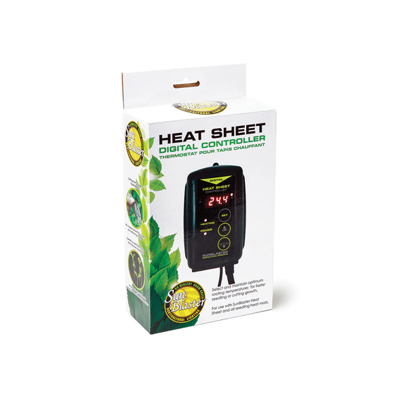 Use the Digital Heat Sheet Controller for precise temperature control of heating mats and growing medium. For use with SunBlaster Heat Sheet and all seedling heat mats.