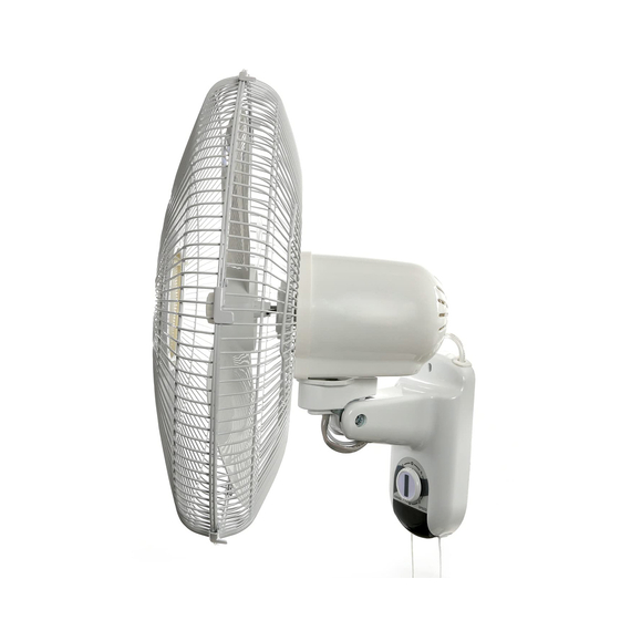 For a cool breeze and steady flow of air you can control—anywhere you need them—turn to the Hurricane Classic 16 inch Wall Mount Oscillating Fan. The 90° oscillation option means side-side-movement reaching wider spaces. Features an option to lock in a static position for limiting airflow to one steady direction. The hanging pull cords mean you can install the fan high on the wall yet still access and control the 3 speed options. This oscillating wall mount fan's quiet, yet powerful motor generates a cooling breeze in areas large and small, without the distracting buzzing or humming. It’s perfect for grow tents, apartments, offices, sheds, home garages, small studios, and dorms. Features a metal fan grill and strong steel neck for support and long-term durability. Comes with a hanging bracket and a 5 ft power cord. ETL listed.