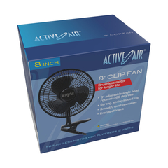 Active Air 8" Clip Fan, 7.5W 7.5W brushless motor for longer life Energy efficient, low voltage Ultra quiet operation Great for small gardens Clips to flood tables for air flow under foliage