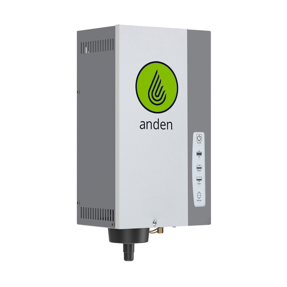 The Anden model AS35FP is a high capacity electrode-type humidifier which runs independently of your HVAC system. The humidifier is capable of between 11.5 and 34.6 gallons per day, providing humidity to grow rooms up to 6,200 square feet. Running on cold water, the Anden AS35FP generates steam by energizing the two electrodes in the steam canister. Current flowing in between the electrodes causes the water to boil, creating steam. Steam is delivered into the grow/drying room via the Fan Pack. The modulating control will vary the Modulating Steam Humidifier’s output based on the difference between the set point and actual RH. When the RH set point is reached the humidifier stops producing steam and continues to energize the fan in the fan pack for 2 minutes to push any residual steam out into the grow/drying room.