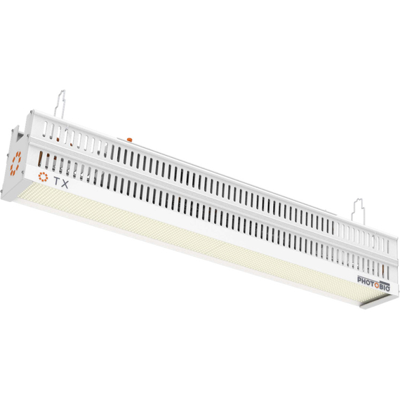 PHOTOBIO•TX high efficiency LED top light is designed for greenhouse and indoor applications. The slim design minimizes sun interference while providing greater access to the plant canopy. The ultra-effective commercial design utilizes a closed loop heat pipe cooling system to rapidly wick heat from diodes, providing superior heat dissipation and longevity. The high efficiency S4 spectrum provides ideal conditions for both human and plant health to deliver better working conditions and consistent crop quality. This fixture allows horticulture professionals increased performance and yields while maximizing ROI.