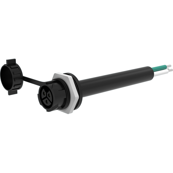 Features heavy duty 6” pre-stripped 10AWG braided flexible copper wiring with 40A capacity and convenient M25 Female locking connection rated IP67 for enhanced dust and water protection.