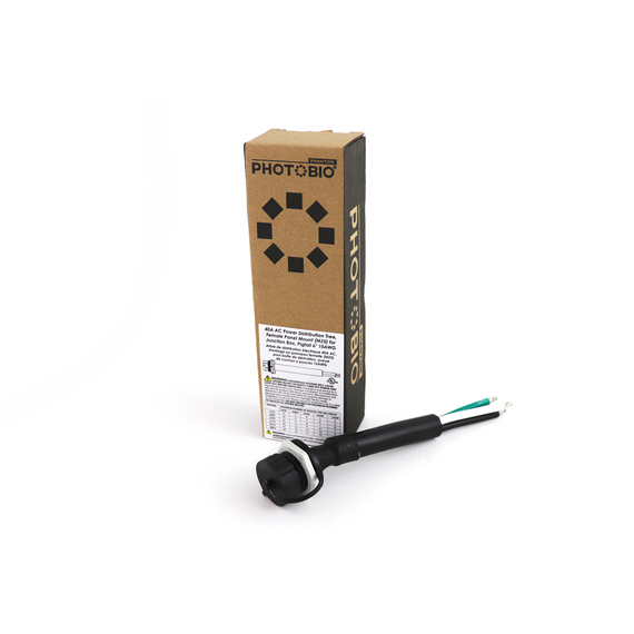 Once installed, each 40A Female Panel Mount becomes the starting point for a PHOTOBIO AC Power Distribution Tree, providing the initial connection point to Power Link Cables (Trunk) and or Power T Cables (Trunk with Branch) depending on structural requirements.