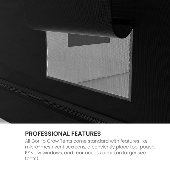 Gorilla Grow Tents are professionally designed grow tents that are ideal for experts and perfect for beginners. The expert configuration positions ducting ports where they should be. Large EZ View windows offer easy grow snapshots without compromising your environment. The doorways offer 360 degree convenient access. The larger layouts provide frustration free maneuvering. Thick material and large double cinching ducting ports make maintaining an ideal growing space a snap. Grow easy on yourself. Grow Gorilla.