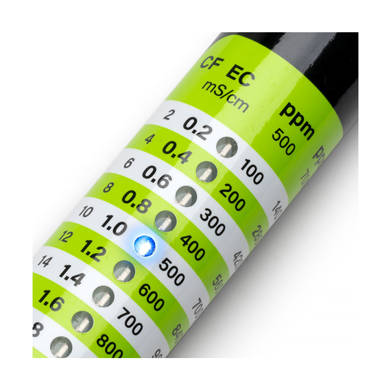 The Milwaukee EC PRO EC/TDS Nutrient Meter is an extremely tough, reliable, IP67 Waterproof Nutrient Meter designed to meet your Hydroponic, horticulture and agricultural needs! This meter arrives factory calibrated and does NOT require user calibration EVER! Twenty (20) blue LEDS makes it easy-to-read in daylight or darkness. There are no user worries about getting the readings incorrect. For plants or vegetables this Nutrient Stick will help promote healthy growth with zero product waste. Powered by 3 AA batteries with EC/TDS and CF scales and an operating environment of 32 to 122°F and up to 95% RH, this unit is perfect for the growers needs.
