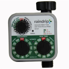 Raindrip Set-N-Flow Analog 3 Dial Water TimerTime Delays up to 72 Hours - On/Off Control - Low Battery Indicator - Easy to ProgramThis unit features a timed rain delay to pause automatic watering for up to 72 hours and an automatic timed manual watering feature that allows it to resume watering...