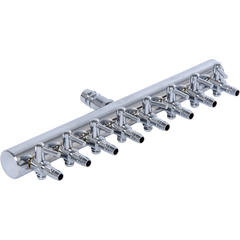 Distribute the output of your air pump precisely with this individually controllable 8-outlet air manifold. Outlets can be individually opened or shut for total aeration control. Constructed from a high-quality blend of copper and stainless steel. Double-barbed ends for tight seal with tubing....