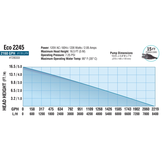 EcoPlus ECO-2245 Fixed Flow Submersible/Inline Pump - 2,166 GPH - 7.25 PSI