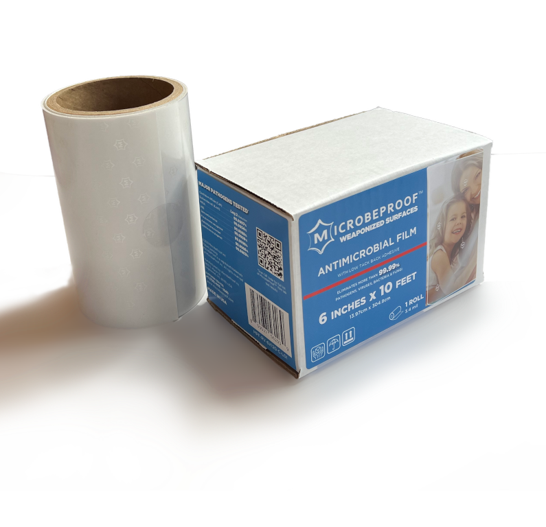 MicrobeProof™ films offer comprehensive protection for over 12 months to most surfaces with an appropriate size, cut and adhesive for every situation. Each surface features a phosphorescent ‘M’ pattern that lights up for brand authenticity. The film is made of highly durable Vinyl that is ideal for wrapping and bending. For transparent surfaces such as divider screens or touch screens our PET ‘Crystal Clear’ product provides high quality transparency and clarity.