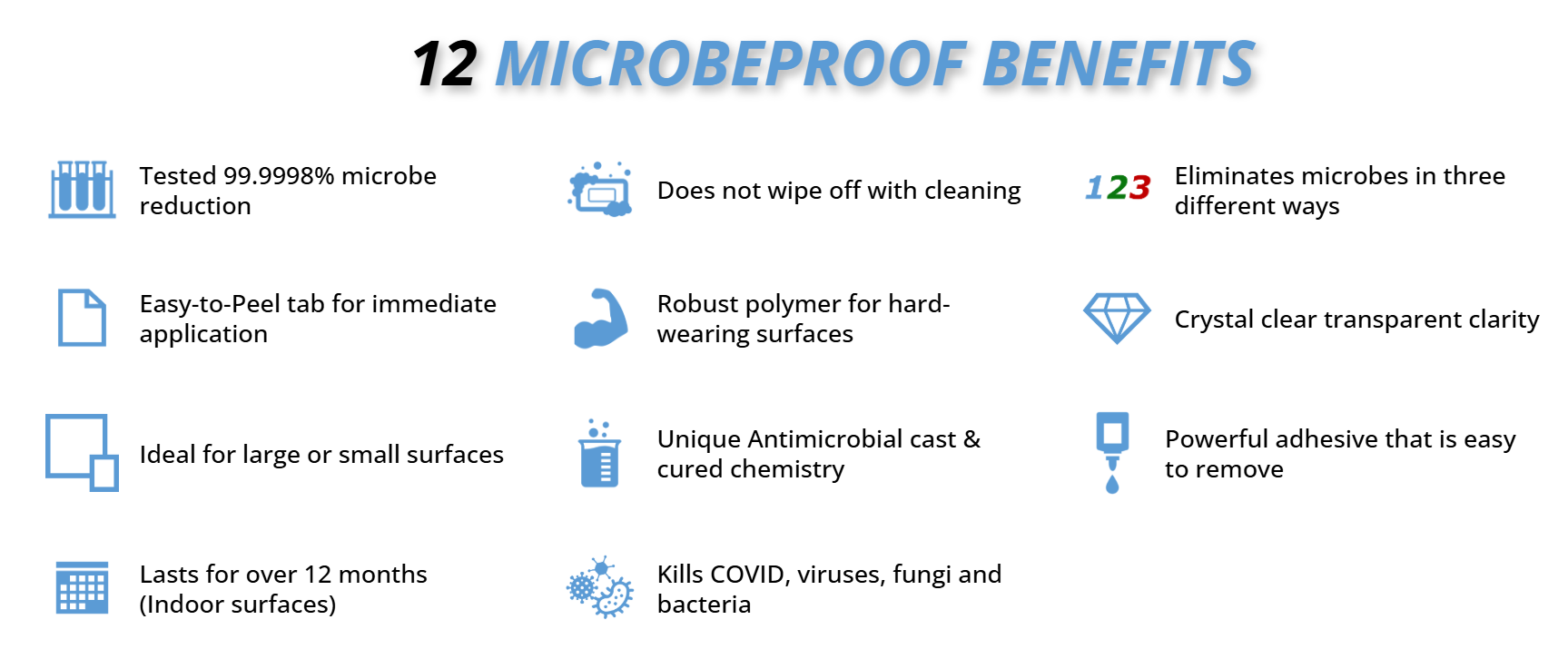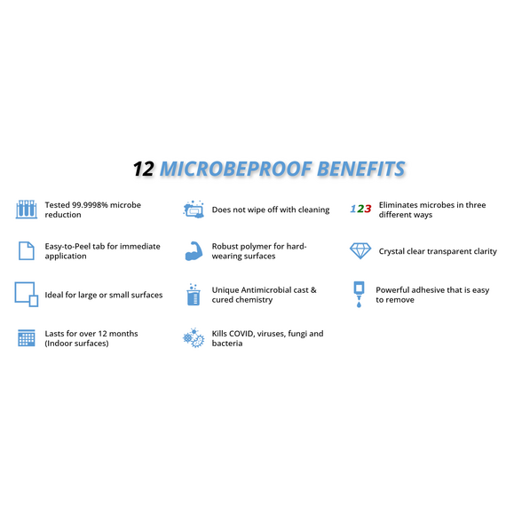In cannabis operations, microbial transfer from hands to door handles—and back onto plants, packaging, and equipment—can compromise product quality and increase the risk of mold outbreaks, failed testing, and product loss. MicrobeProof’s antimicrobial technology is embedded directly into the film, delivering continuous, 24/7 protection that does not leach, wear off, or interfere with daily operations.