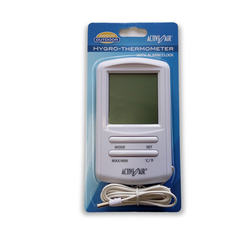 Active Air's indoor-outdoor thermometer gives you more. Made of sturdy materials to stand up to the climate of your indoor grow room, this essential tool features a large display to read the current temperature and humidity levels. A remote probe allows you to sample two temperatures at once....