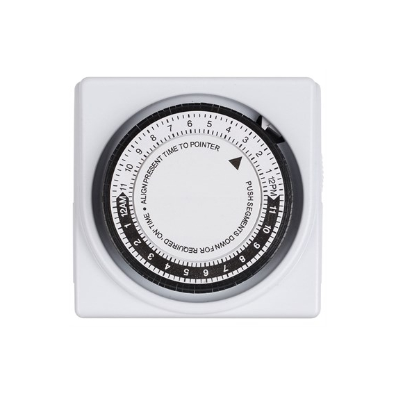 Hort2O Dual Outlet Mechanical Timer120V - 30 minute Increments - Up to 48 On/Off Cycles per DayThe Hort2O 24hr Dual Outlet Mechanical Timer allows two items to be controlled by the same timer. Easy-to-set 30 minute increments. 48 on/off cycles per day.