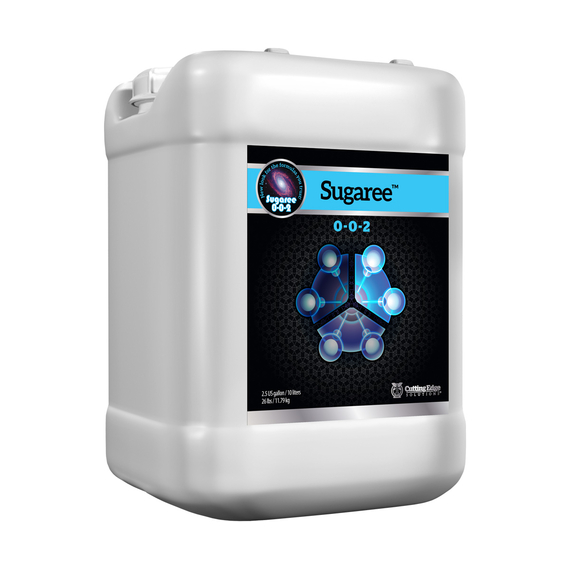 Sugaree provides an organic carbohydrate and electrolyte source to stimulate amino acid production, and provides a carbohydrate source. It contains polysaccharides folded into a matrix fortified with an emulsion of trace minerals. This formulation acts as a compensator as lowering sunlight levels at the end of season precipitate drops in photosynthetic rate and ATP (plant sugar) production. These additional carbohydrates provide the plant with the energy it requires to fuel respiration, which drives fruit set. Its specially designed organic formulation targets increases in fruit set, retention, and sugar production.