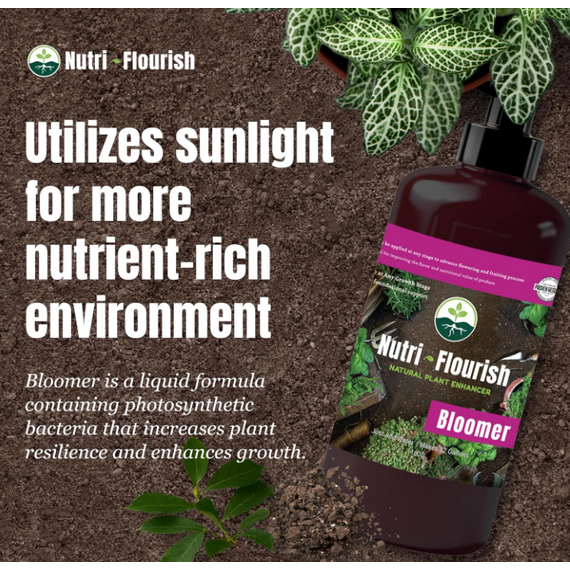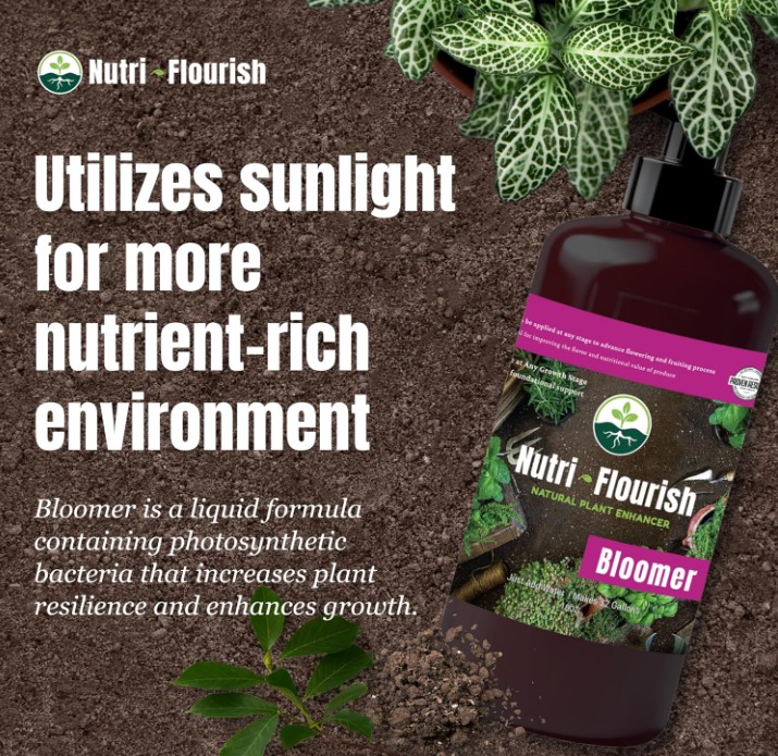 Bloomer is a liquid formula containing photosynthetic bacteria. This product leverages sunlight to create a nutrient-rich environment for plants, resulting in enhanced growth and vitality.