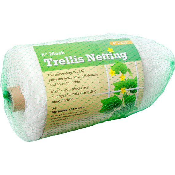 Heavy duty, long lasting trellis netting features 6" reach-through mesh that allows the trellis to handle more weight, remain taut, and provide strong support for growing crops.