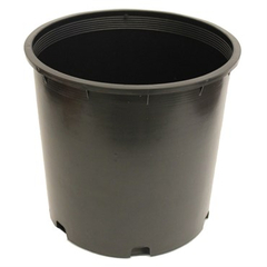 Nursery Supplies PI-PC Nursery ContainerSquat Trade #5 - Black - Round - 10.75in D x 10.5in H - 4.08galEconomical PI injection-molded containers. Strong and rigid. Tier stacking. Label, hot stamp, and printing compatible.