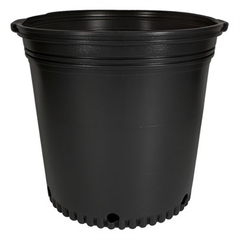 Nursery Supplies Blow-Molded Custom Trade PotTrade #7 - Black - Round - 14in D x 11.5in H - 6.08gal (23.02L)An economy line of blow-molded containers. These containers are designed to get your plants to market efficiently. Durable, flexible, and easy on the budget.