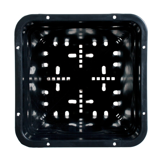 Heavy duty black growing pots are available in multiple sizes to fit your growing space. Raised bottom and unique multi-drainage holes and slits for optimum aeration of the root zone. Durable plastic will give you years of use.