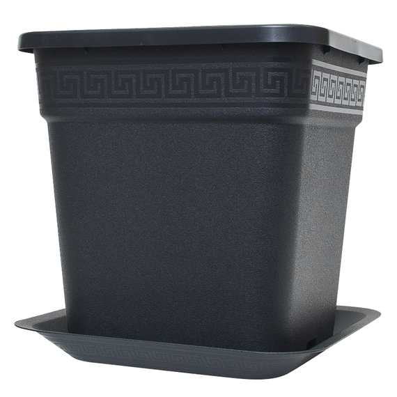 The new square shape with the textured exterior and patterned design at the top stands out from the rest of the pots. Made from copolymeric polypropylene that is stabilized to handle the UV rays. Works great with the Gro Pro® Square Saucers.