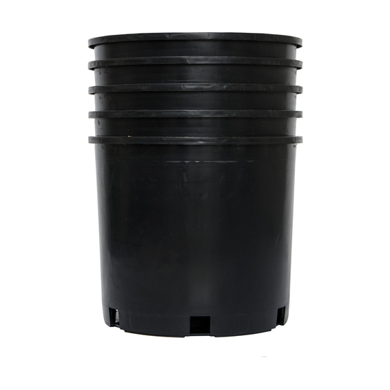 Squat Containers offer a wide base, which is ideal for shallow rooted plants and produces a better root ball. They also help to conserve water by capturing more during watering. Great for stacking and even greater for windy conditions.