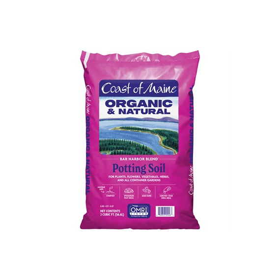 Coast of Maine Bar Harbor Blend Organic & Natural Potting Soil2cu ft - OMRI ListedThis great all purpose potting soil is made with natural and organic ingredients such as lobster, kelp, compost, perlite and sphagnum peat. It is designed for potting indoor and outdoor container plants. Water and fertilize less with this nutrient-rich, compost-based potting soil. OMRI Listed .