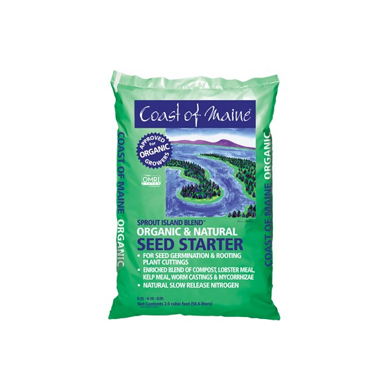 Coast of Maine Sprout Island Seed Starter2cu ft - OrganicCoast of Maine has created this organic seed starter for seed germination and starting root cuttings. It is made with a mixture of blended sphagnum peat moss, kelp meal, perlite, worm castings and well- aged compost. It also contains mycorrhizae. This soil is ready-to-use and will provide aeration and natural moisture retention. So start your plants off correctly and use this organic seed starter!