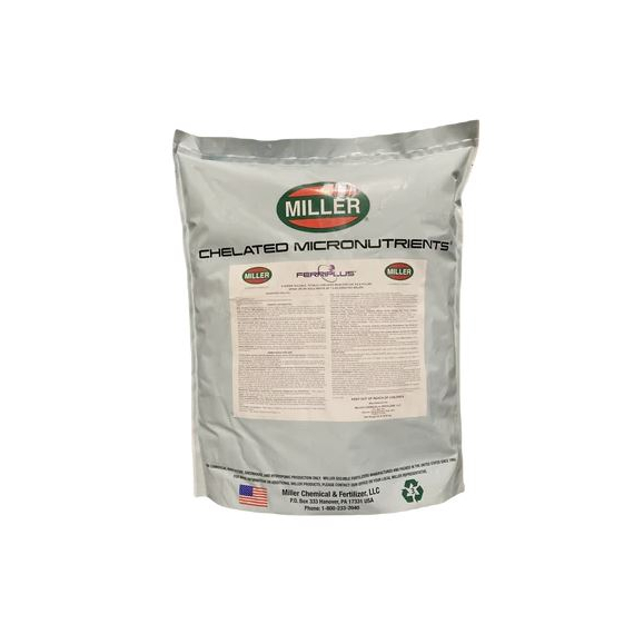 Ferriplus Micronutrient with 6.0% Iron20lb - Microgranules - Water Soluble - 6.0% Chelated IronFerriplus is a water soluble, EDDHA chelated iron (6%) for use on soils with a pH above 7.5. Derived from iron, EDDHA (ethylenediamine di-(o-hydroxyphenylacetic acid) is a source of iron in a form that is readily available to plants. It performs best on highly alkaline and calcareous soils but will still perform on neutral to slightly acidic soils. This product provides increased iron availability in soil pH ranges from 8-12 due to its unique EDDHA chelating agent. Rates of application depend upon severity of deficiency but should be kept within the recommended range for each crop. Optimum results, unless specified differently, occur when applications are made early in the growth cycle. For optimum results in soil application, it must get into the plant's root zone. The chelate can be placed in the root zone during planting or it can be incorporated into the soil by rainfall, irrigation or mechanical tillage. Store in a cool, dry and well-ventilated place inside a closed container. Keep out of reach of children.