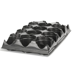 Landmark Transport TrayX-4.5TPPPB - Holds 15ea 4.5in Round Pots - 23.06in L x 14.06in W x 3.94in D - BlackDurable, tear resistant trays with bottom drainage and easy, finger-tip extraction. Includes de-nesting notches for automation equipment.