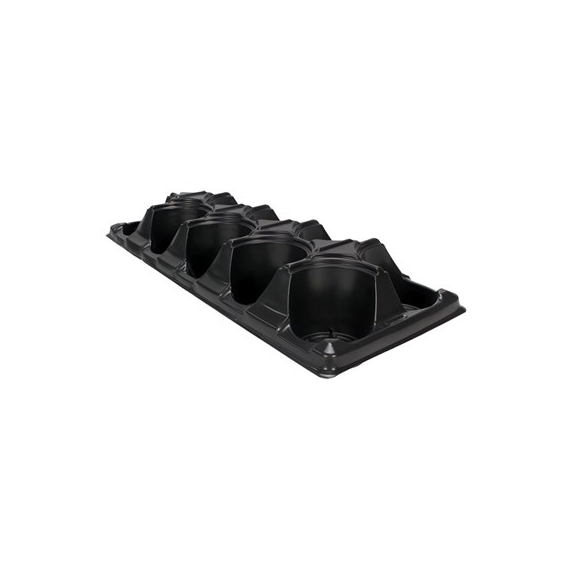 The HC Companies Pocket Carry Tray23in L x 9.5in W x 3.75in H - BlackDurable and rigid construction delivers consistent handling performance in every step of the supply chain. Self-orienting features rotate the pots to best display printed graphics. Flat-filler trays fit pots securely for easy evening of soil. Designed to work on roller conveyors and automated potting systems. Lowered sidewall ledge for added strength and greater profile of branded pots. Works well in automated tray dispensers.Compatible Trays/Hangers/Accessories: XGR04500
